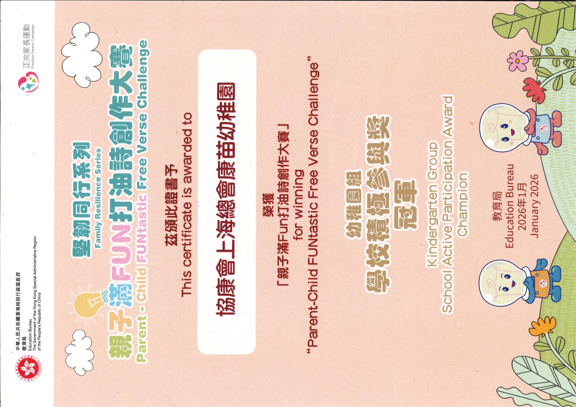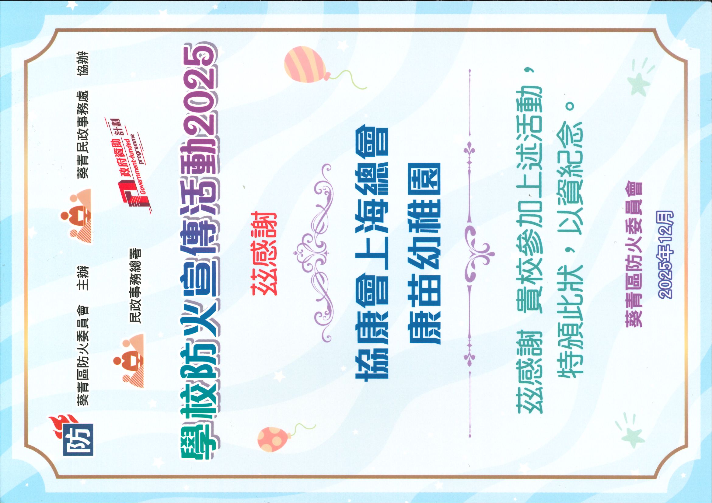 香港大学-好动幼儿 感谢状-2022-2023 |