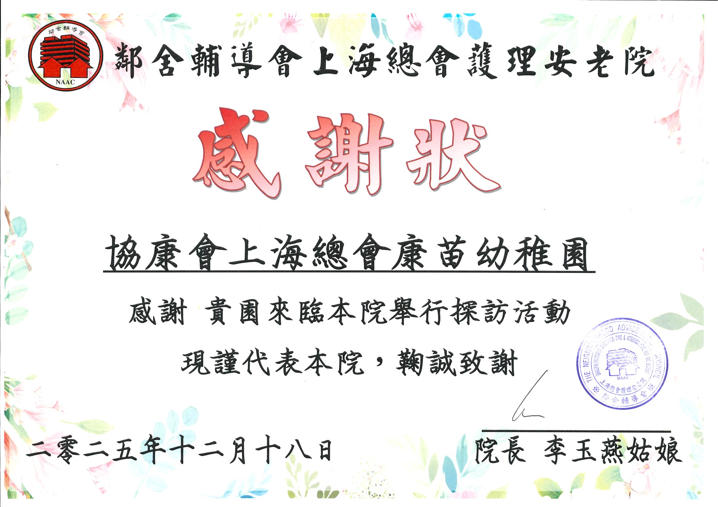邻舍辅导会上海总会护理安老院-感谢状 |