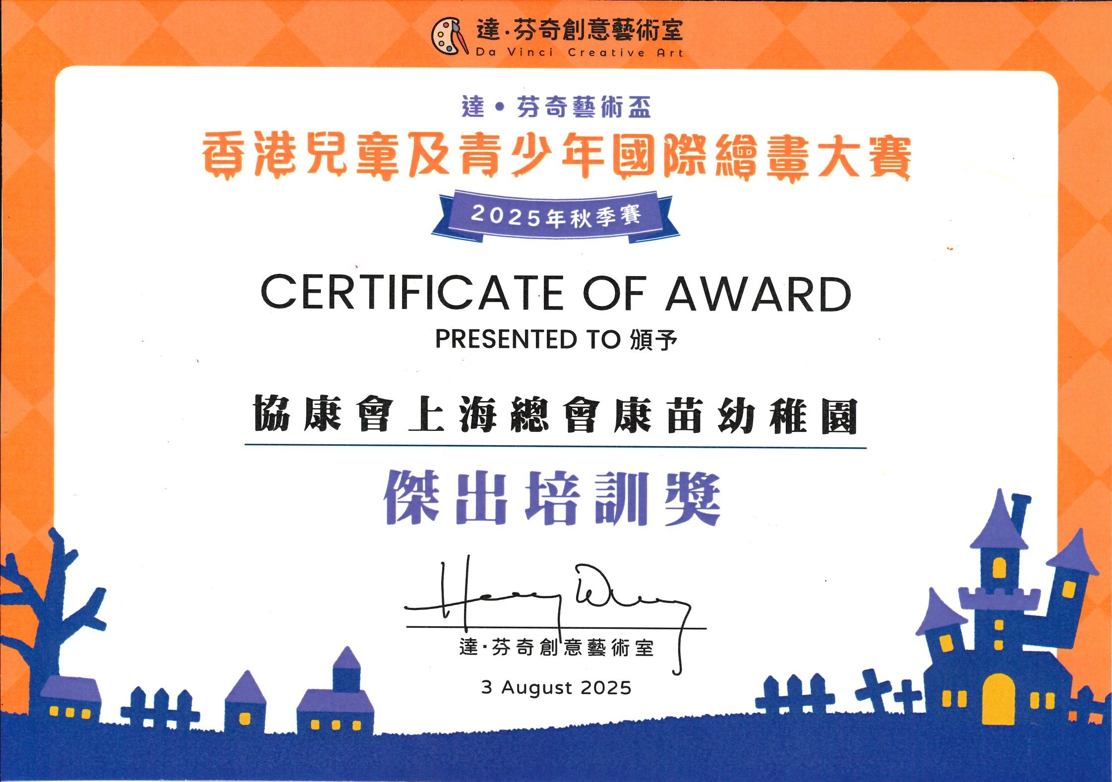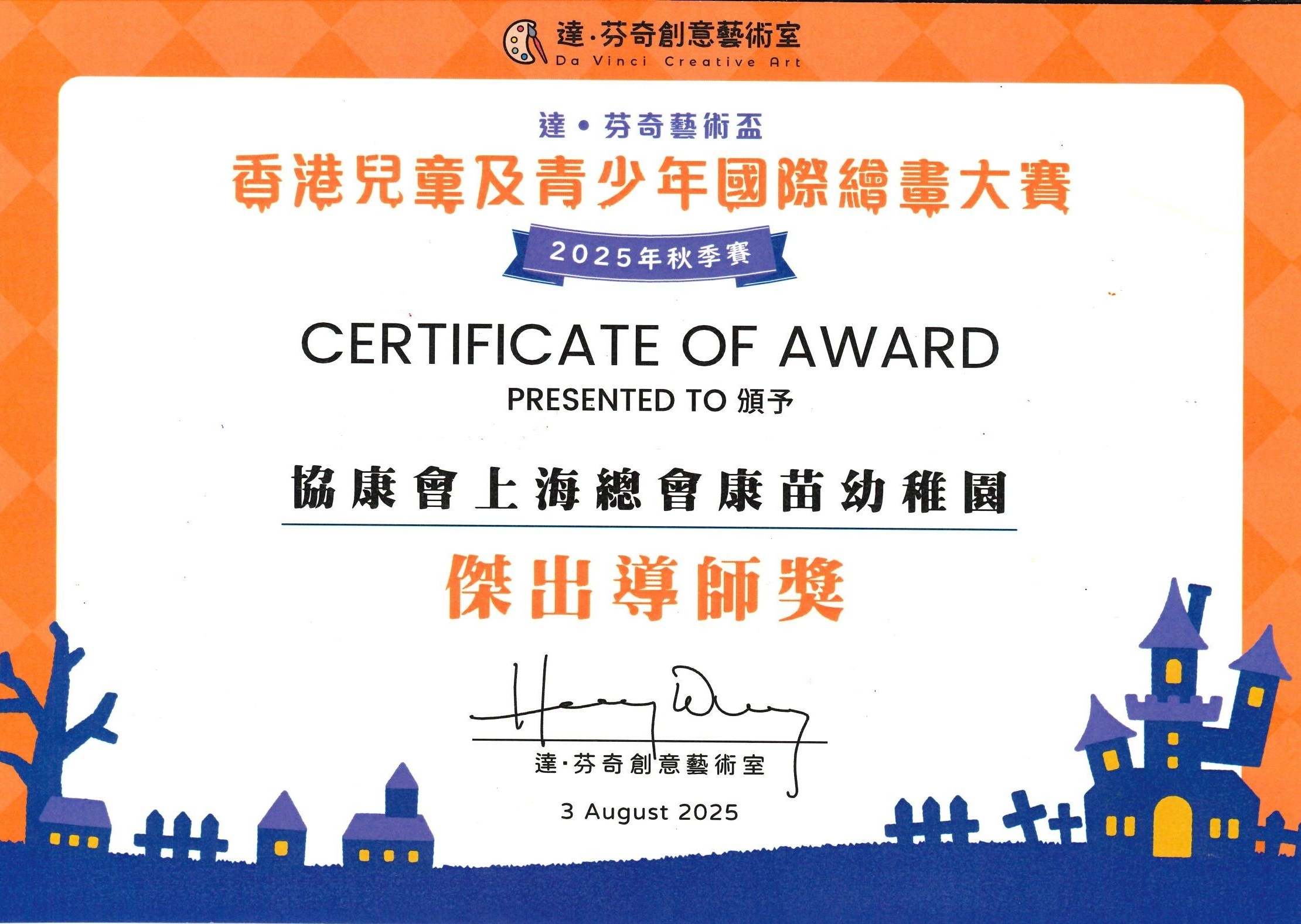 香港儿童及青少年国际绘画大赛-杰出培训奖 |